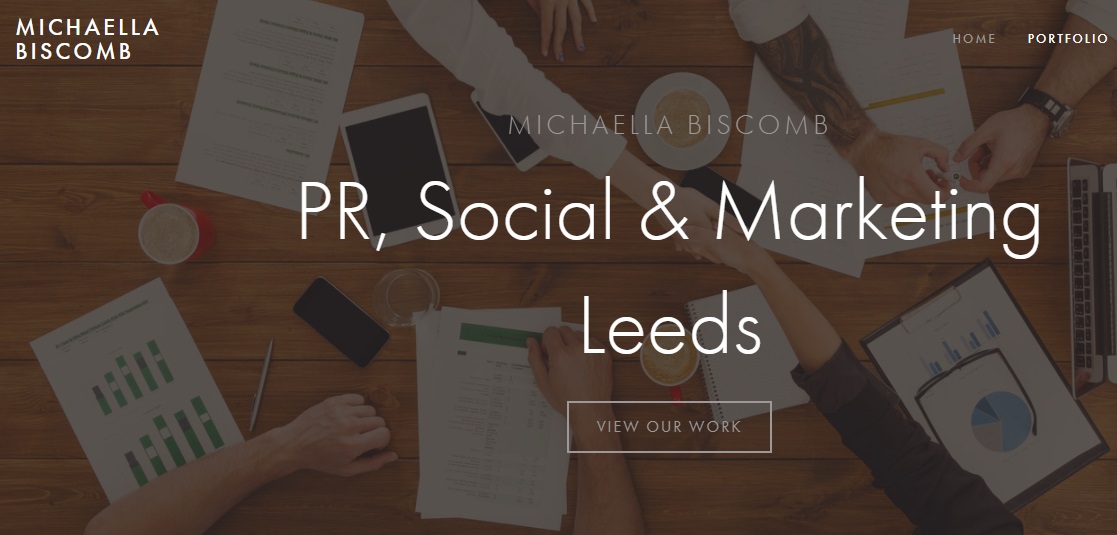 Michaella Biscomb only graduated with a public relations degree last year (2017), so she’s at the start of her career. But when others in her year are pursuing graduate opportunities in London, she stayed in her home city and has already set up on her own, positioning herself as a ‘Freelance PR, Social Media and Marketing professional based in Leeds.’