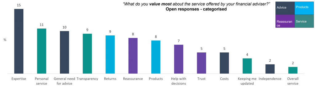 Respondents also said that expertise and personal service were valued most in terms of the services offered by their adviser: