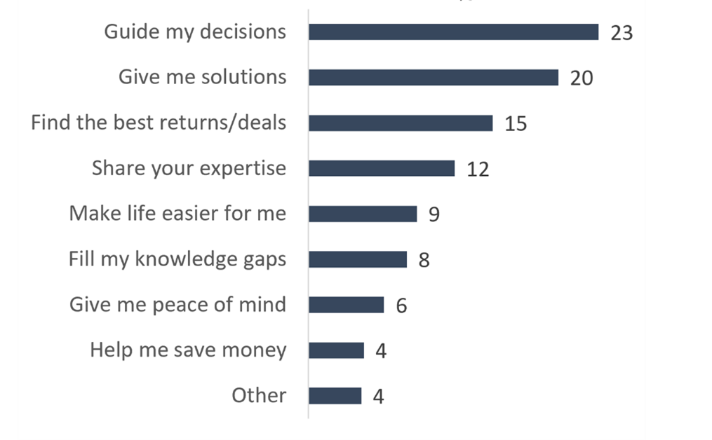 On the first question, the research found that those surveyed most valued having someone to guide financial decisions: