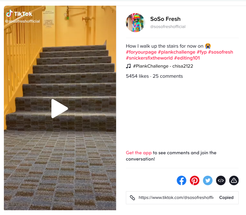 It’s a stream of 15 second videos featuring dance moves set to music that readily become memes. You’ve not tried the Oh Na Na challenge yet? Or watched people apparently levitating upstairs attempting a #stairshuffle?
