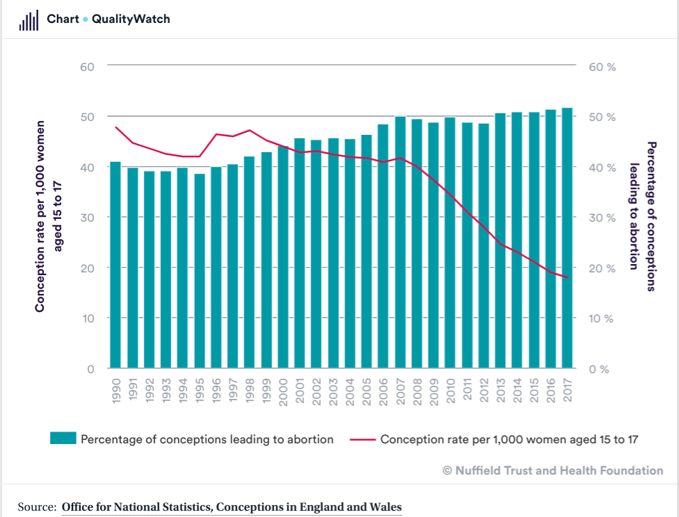What could explain this sudden and sustained behaviour change? Was it the wider availability of contraception? Was it thanks to a new public health message? Was it to any change in sex education in schools? How I’d love to credit an effective communication campaign.