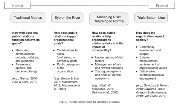 In a recently published study, University of Missouri scholar Luke Capizzo explores this rather complex question through interviews with PR practitioners. His insights on the measurement and evaluation of wicked VUCA problems in PR are worth considering as “the growing frequency of intractable problems and contentious issues … requires a broadening of our perspectives” (Capizzo, 2022, p. 4).