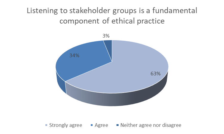 There was also strong agreement that listening to stakeholder groups is a fundamental component of ethical practice.