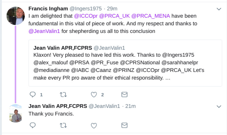 ‘Personally I can support all the principles because they are so relevant and important to the work I do on a daily basis.’ - Stephen Waddington: New international ethical principles for PR welcomed, education and enforcement required (22 August)