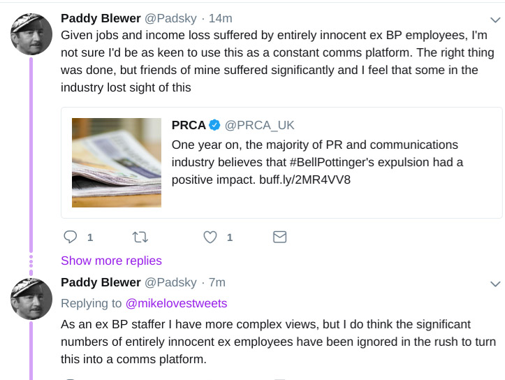 ‘The New Statesman article ends with a bizarre phrase that ‘PR is winning’. Winning against whom and against what?’