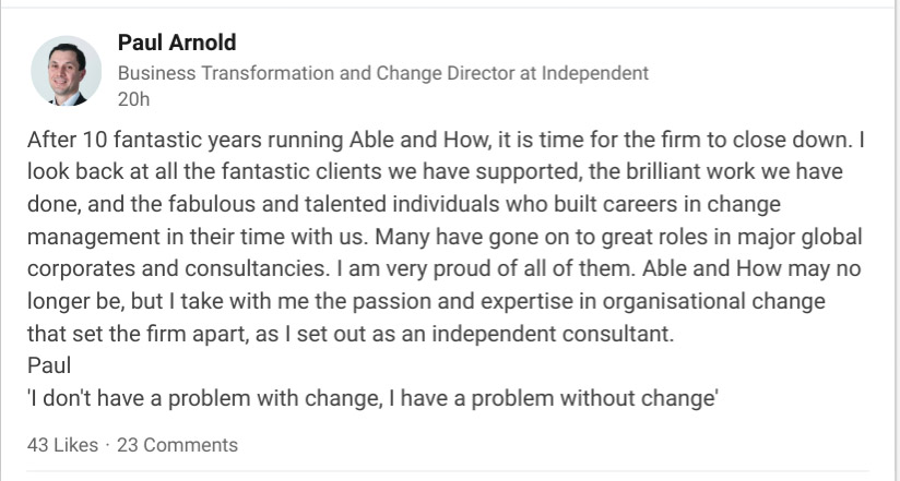 ‘The most important question for me to answer was – ‘is this workable in a way that doesn’t impact client results?’, and for me, for the team and, most importantly, for our clients, the trial answered that emphatically and positively.’ - Natalie Sherman: Lessons from three years of running my own business…. (3 September)
