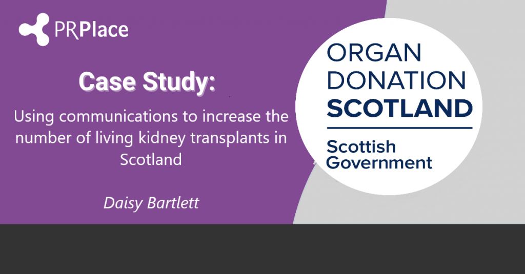 This included shifting the focus from creating case studies about people who had recently had a kidney transplant within the previous 6 to 12 months, to those who received them long before that. In some cases, they included donors and recipients of transplanted organs from over 25 years ago, and who were still doing well. This was a tactic that, before the research was completed, would not have been considered as a viable or successful PR option, but which was well received by the Scottish press and media when used as part of a deceased organ donation campaign.